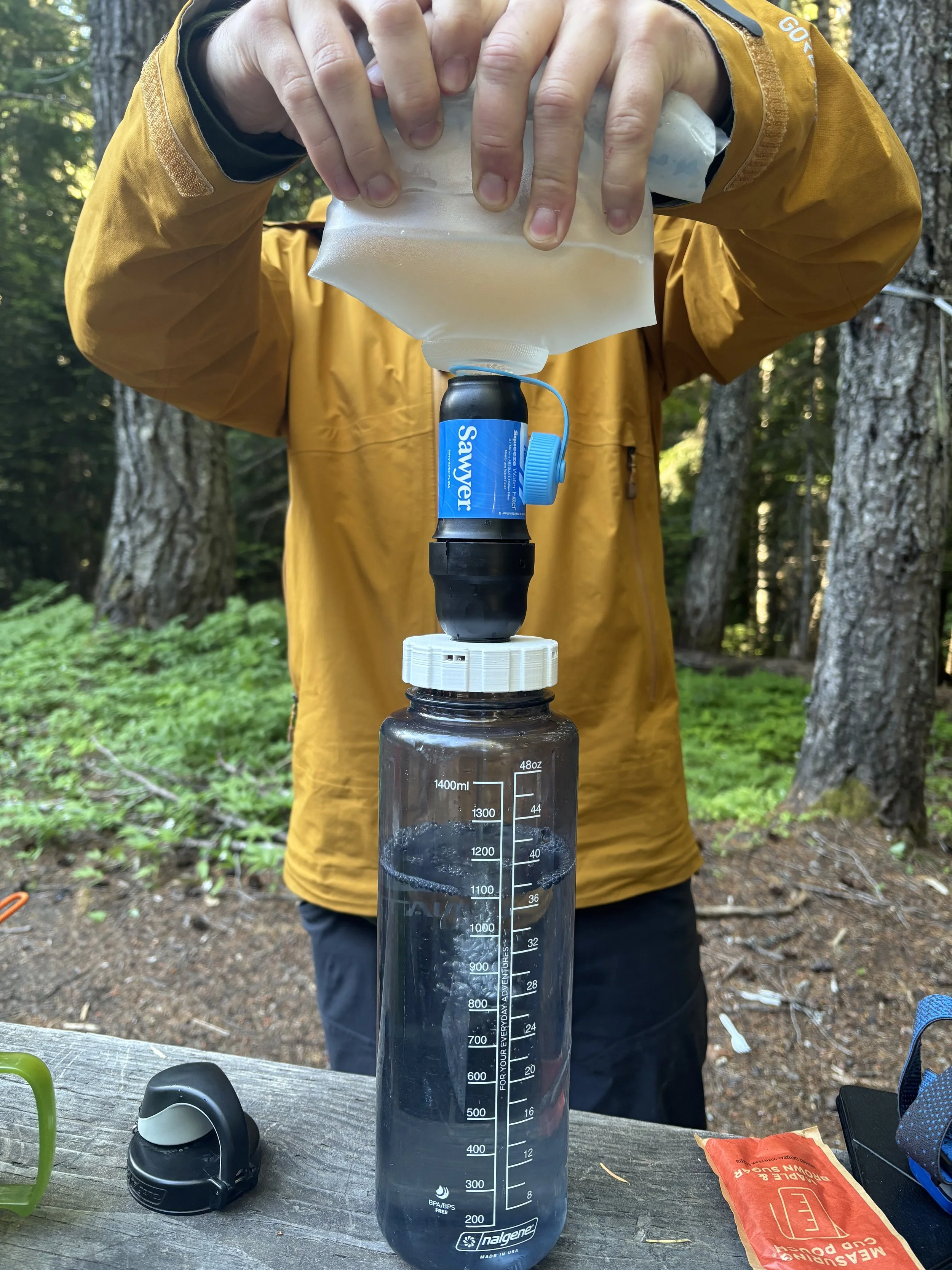 Importantly, we packed and shared a Sawyer squeeze water filter to ensure we had clean safe water to drink for the entire trip. Eliot rode with this at all times, which came in handy during our 11 mile climb on Day 2 where we ran out of water mid-way up the climb and were able to refill from a stream on the side of the road. As you can see in the photo below, Eliot 3-D printed the interface between the Nalgene and the actual filter, which proved to work beautifully. I keep telling him to sell his inventions - but he doesn’t listen to me.