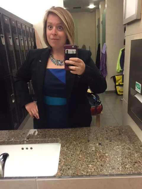 Don't mind the goofy face in this photo- I usually only take selfies when I'm on my bike. This was my favorite dress so far, paired with my own blazer, and I got more compliments than I ever have on any outfit at work.